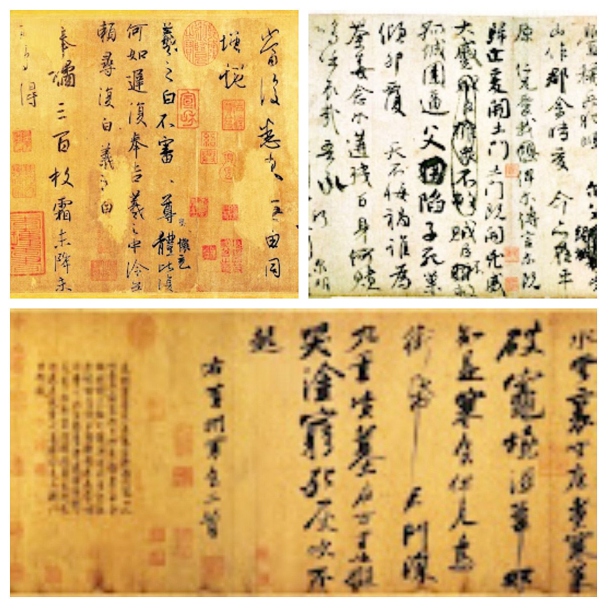 劉老師還介紹了書法珍品,有晉朝書法家王羲之的書法作品《平安何如奉橘三貼》,現存雙鉤摹本。唐代書法家顏真卿創作的行書紙本書法作品《祭侄文稿》,與東晉王羲之的《蘭亭序》、北宋蘇軾的行書《黃州寒食帖》並稱為“天下三大行書”,亦被譽為“天下行書第二”。《寒食帖》是蘇軾撰詩並書,墨蹟素箋本,通篇書法起伏跌宕,光彩照人,氣勢奔放,而無荒率之筆。《寒食詩帖》在書法史上影響很大, 被稱為“天下第三行書”,也是蘇軾書法作品中的上乘。(圖二)