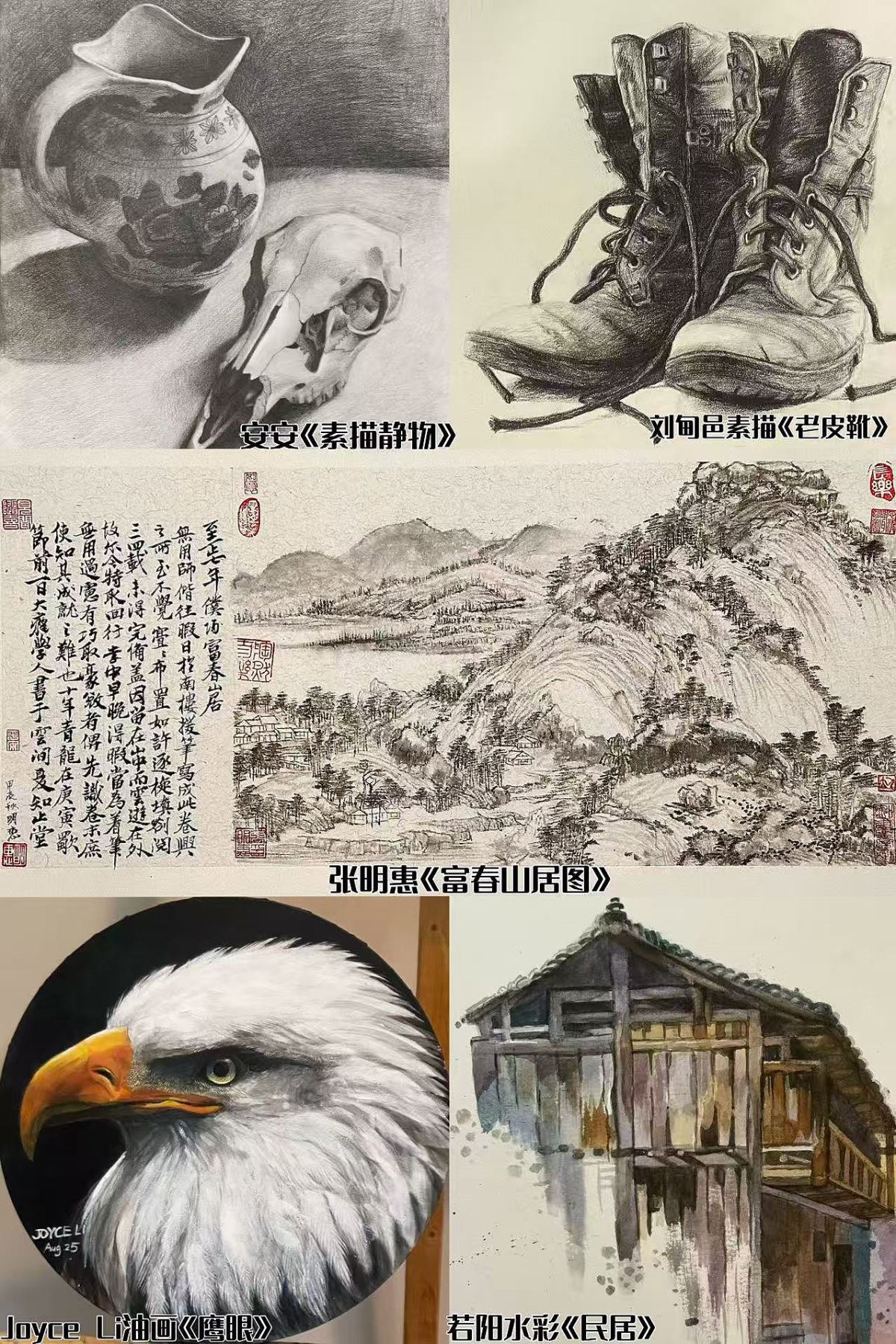 小記者趙品涵採訪了在現代中文學校服務五年的劉隼老師,問了劉老師五年來都開過什麼課,劉老師說開過很多課程,從少兒繪畫到成人書法,中國畫,以及水彩。還問了劉老師教過的學生中年齡最大和最小的學生的年齡和學習的課程,劉老師說年齡最大的學生有八十多歲,年齡最小的只有三歲,一般孩子最小從六七歲開始學畫。劉老師分享了他的各個年齡段的學生的作品,包括素描,中國畫,油畫和水彩。其中就有聖路易現代中文學校董事長張明惠女士臨摹的《富春山居圖》。劉老師還分享了他的個人網頁:https://www.liusunart.com/ 和他的Youtube 頻道:www.youtube.com/@SUNARTSTUDIO,上面有很多劉老師的作品和教學視頻,希望喜歡藝術的朋友們來欣賞,學習。(圖五)