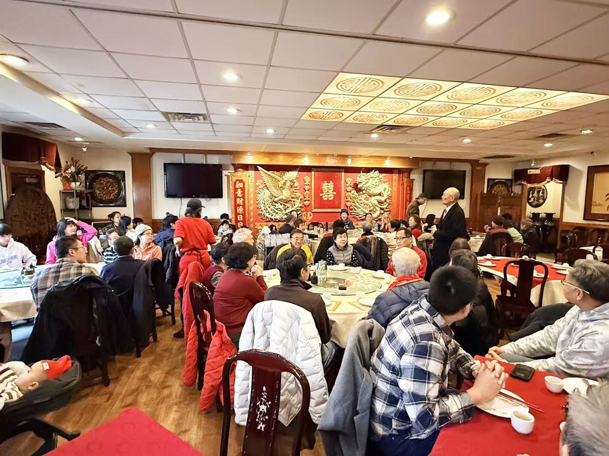 升旗典禮過後,與會僑胞隨即移師至金滿樓餐廳,參加中華民國一百一十五年新年團拜餐會,享用金滿樓餐廳所提供的精美豐盛的茶點早午餐。餐會由密蘇里榮光聯誼會長廖亨利先生主持,祝大家新年快樂、鴻圖大展、事事如意。陳慧文牧師並帶領參加民眾祈禱,僑胞齊聚一堂,加上美味餐點,氣氛歡欣,熱鬧非凡。