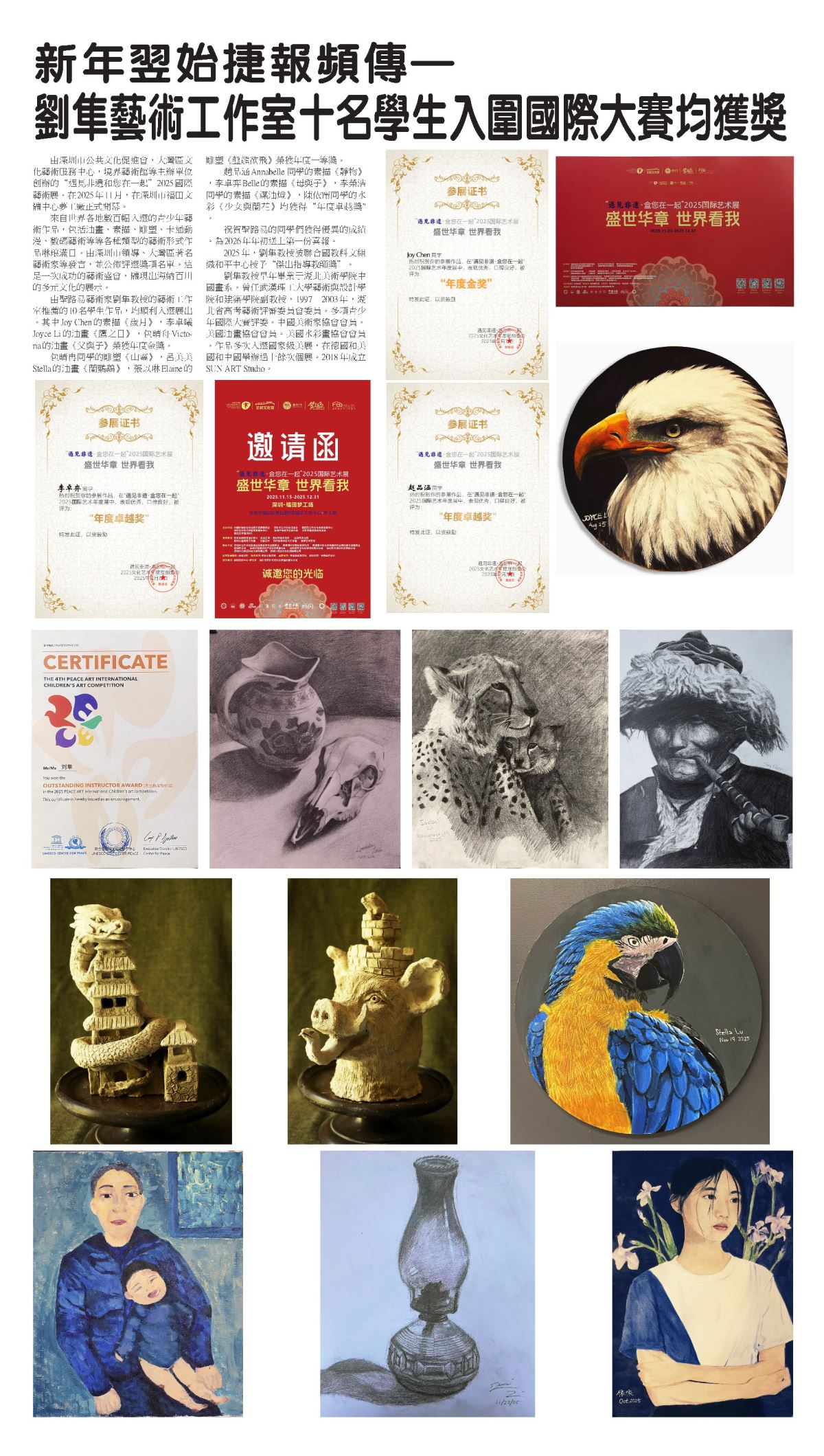 2026/01/08 新年翌始捷報頻傳— 劉隼藝術工作室十名學生入圍國際大賽均獲獎